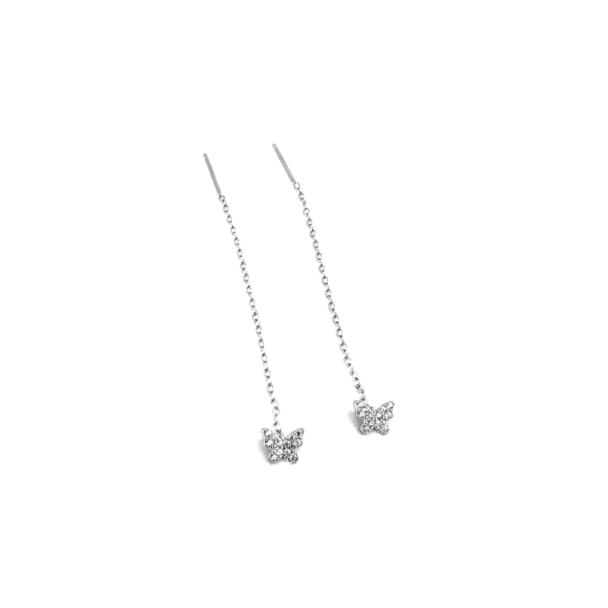 Sterling Silver Drop Earrings with Sparkly Butterfly Cubic Zirconia | Shop Now for Glamorous Dangle Earring