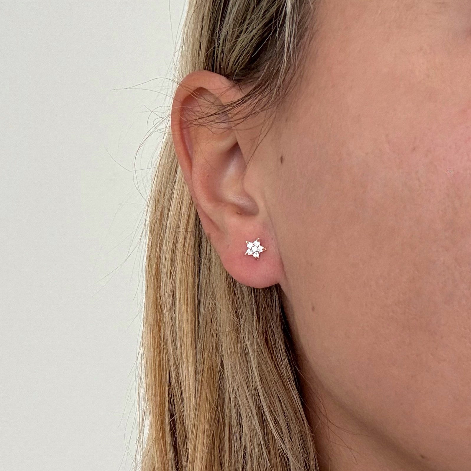 14k Gold Star Earrings Set with Sparkly Stones for Everyday Wear