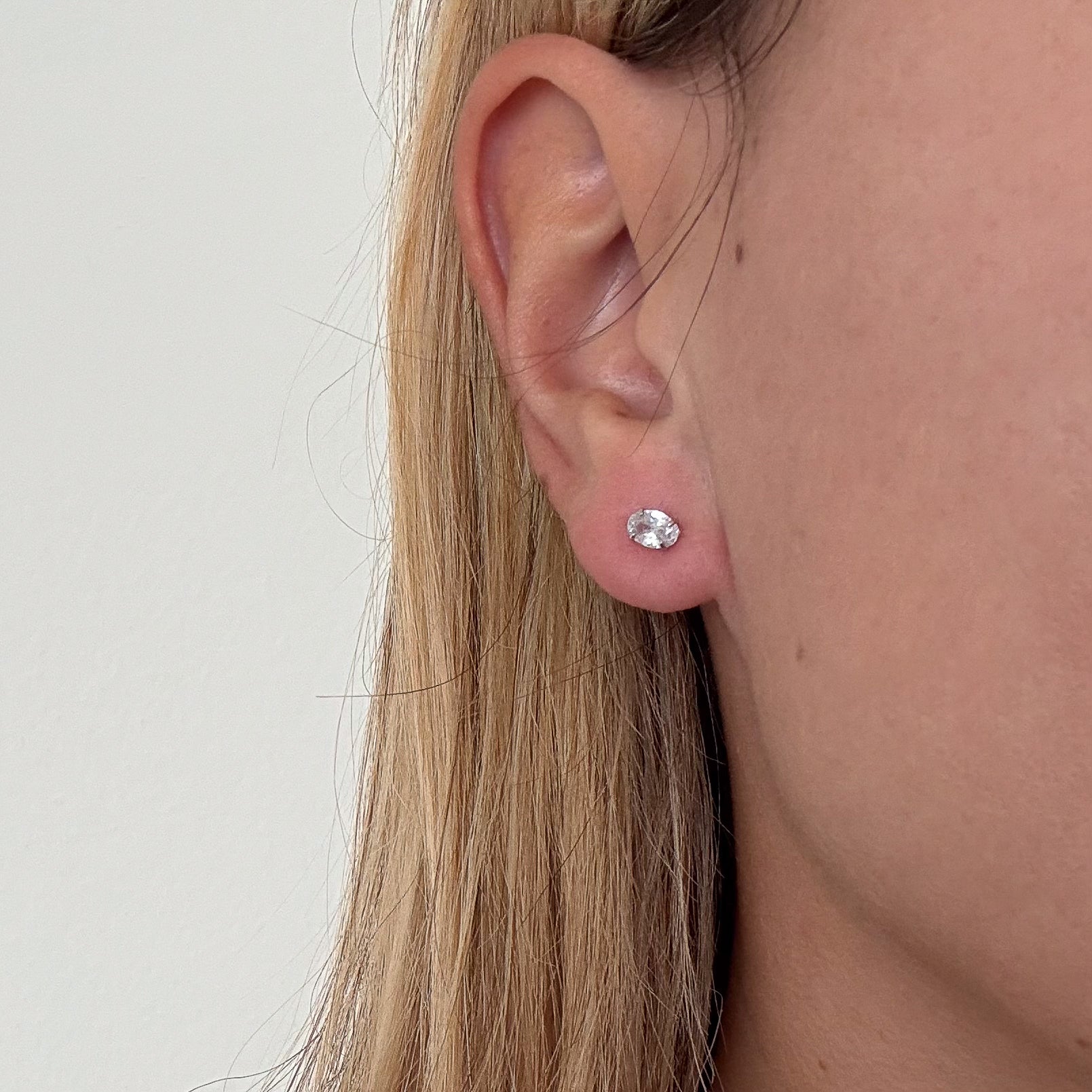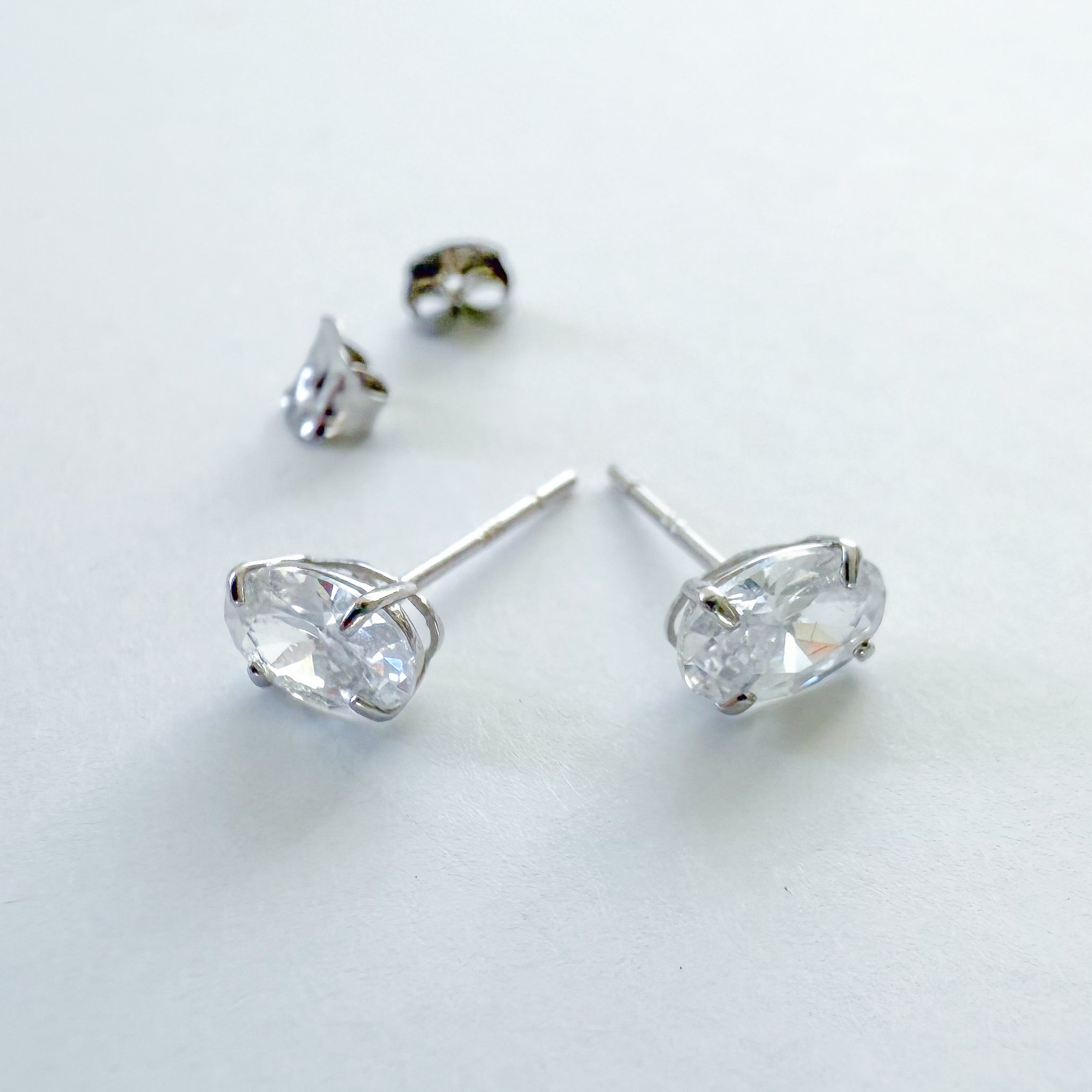 14k White Gold Oval Stud Earrings - Sparkly Earrings Set Diamond Like Studs