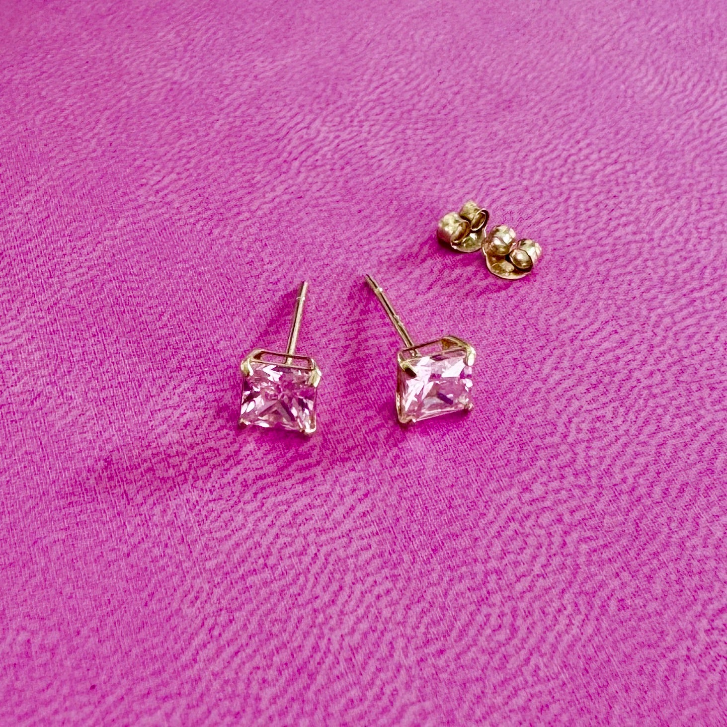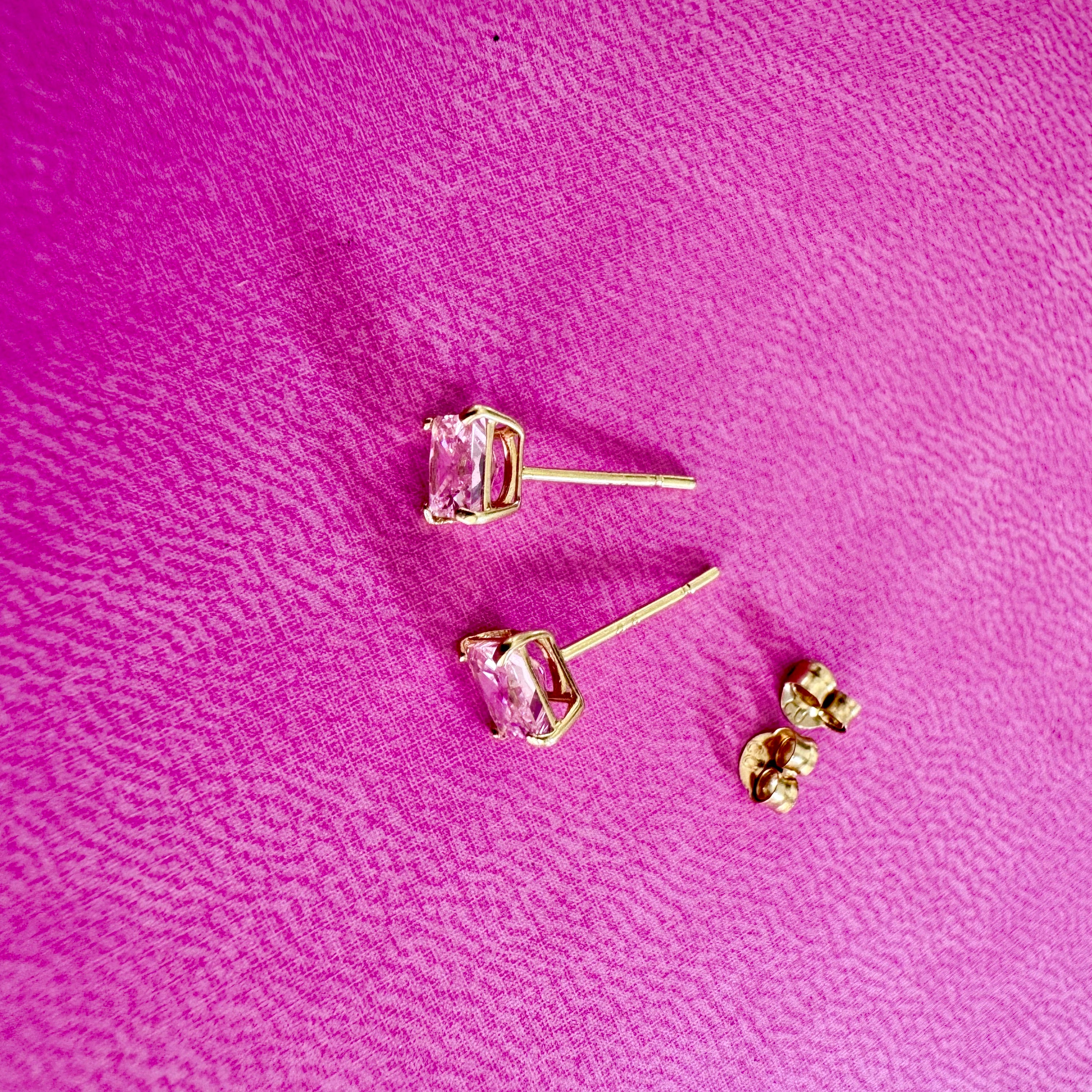Rose Pink Cubic Zirconia Stud Earrings: 14k Yellow Gold
