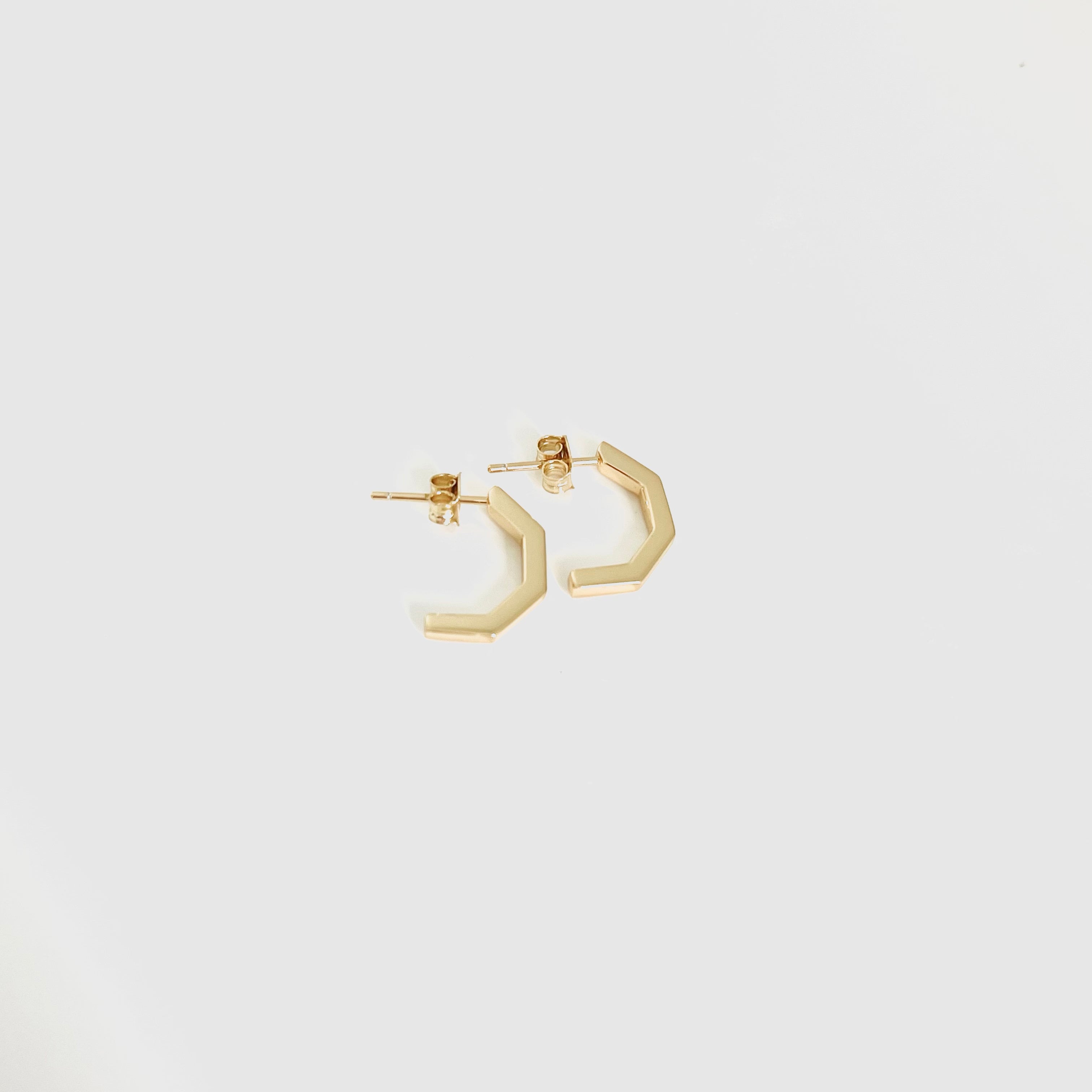Gold Mini Hoop Earrings with a Hive Design: 15mm
