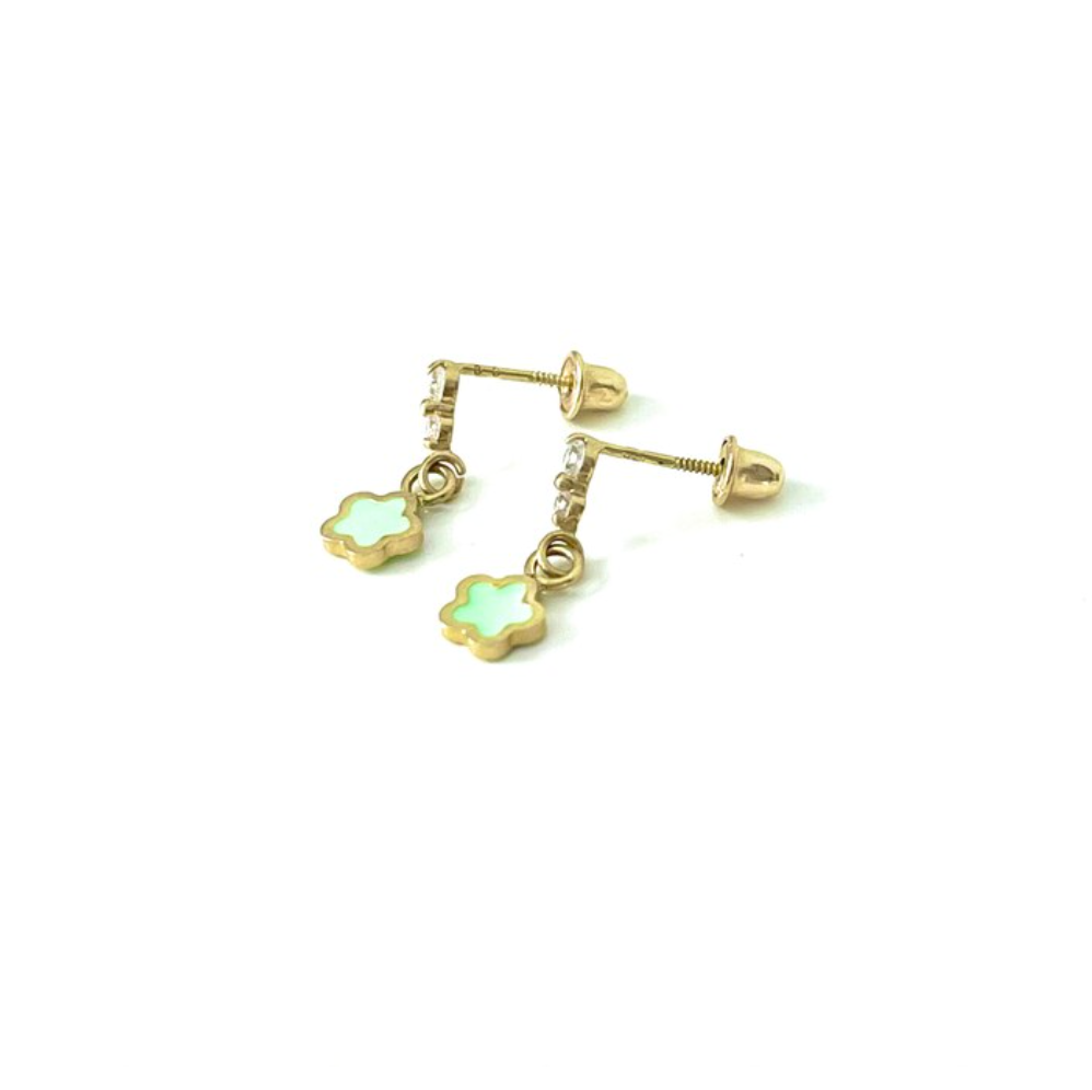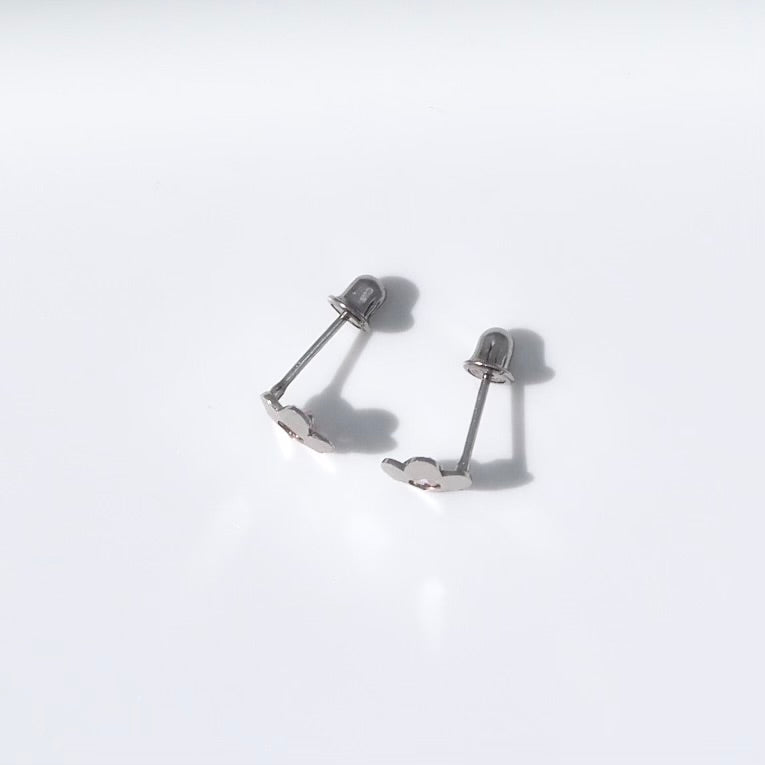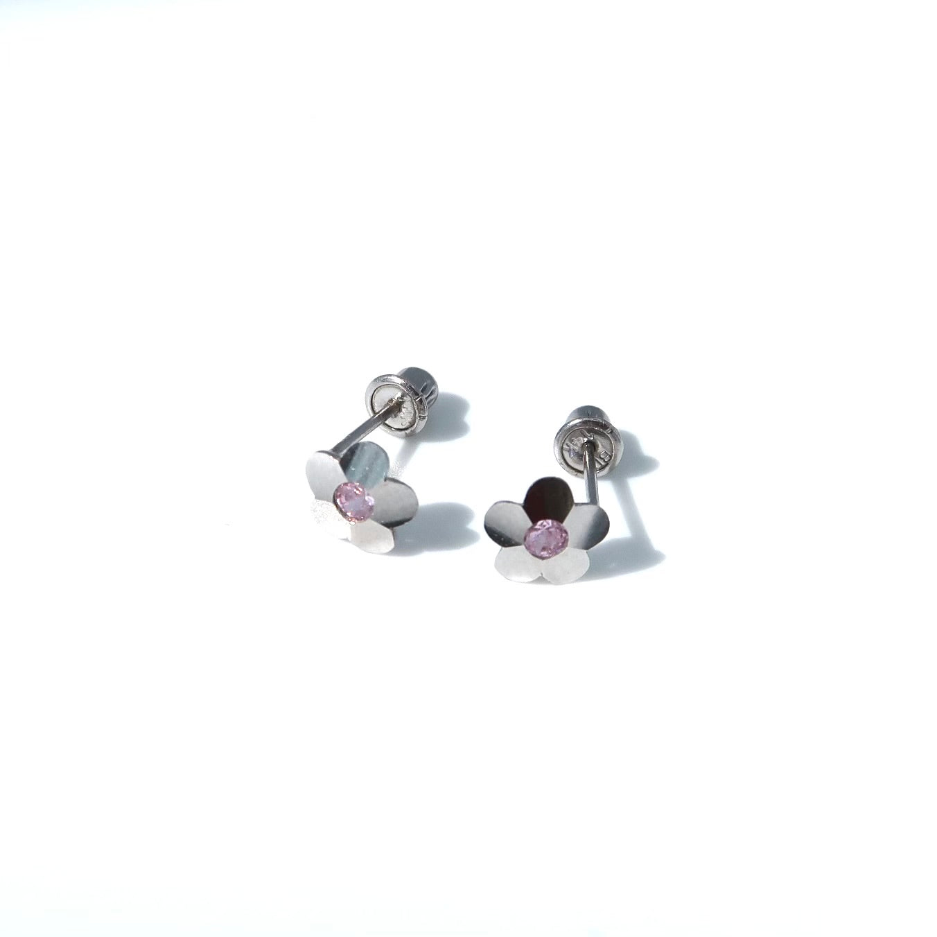 Flower with Rose Stone Earrings Set: 14k White Gold