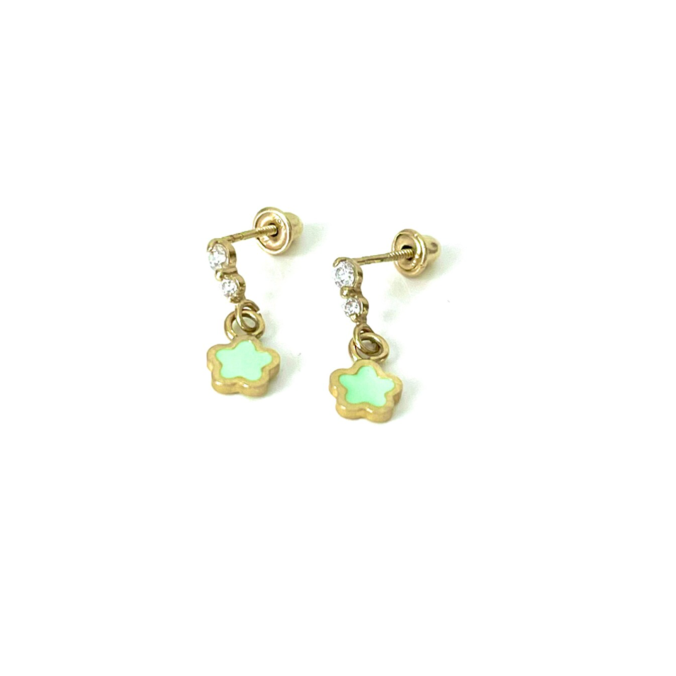 Purple Flower Enamel Stud Earrings in Yellow Gold