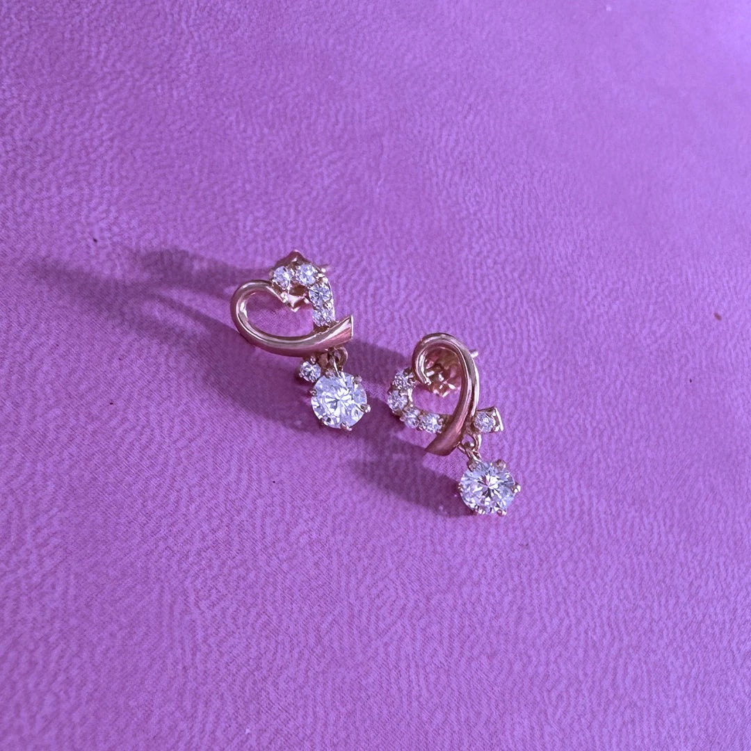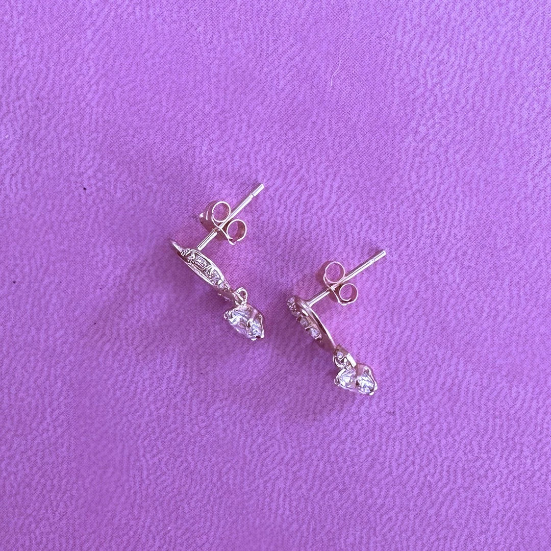 Heart Shaped Earring with Sparkly Stones: 14k Yellow Gold